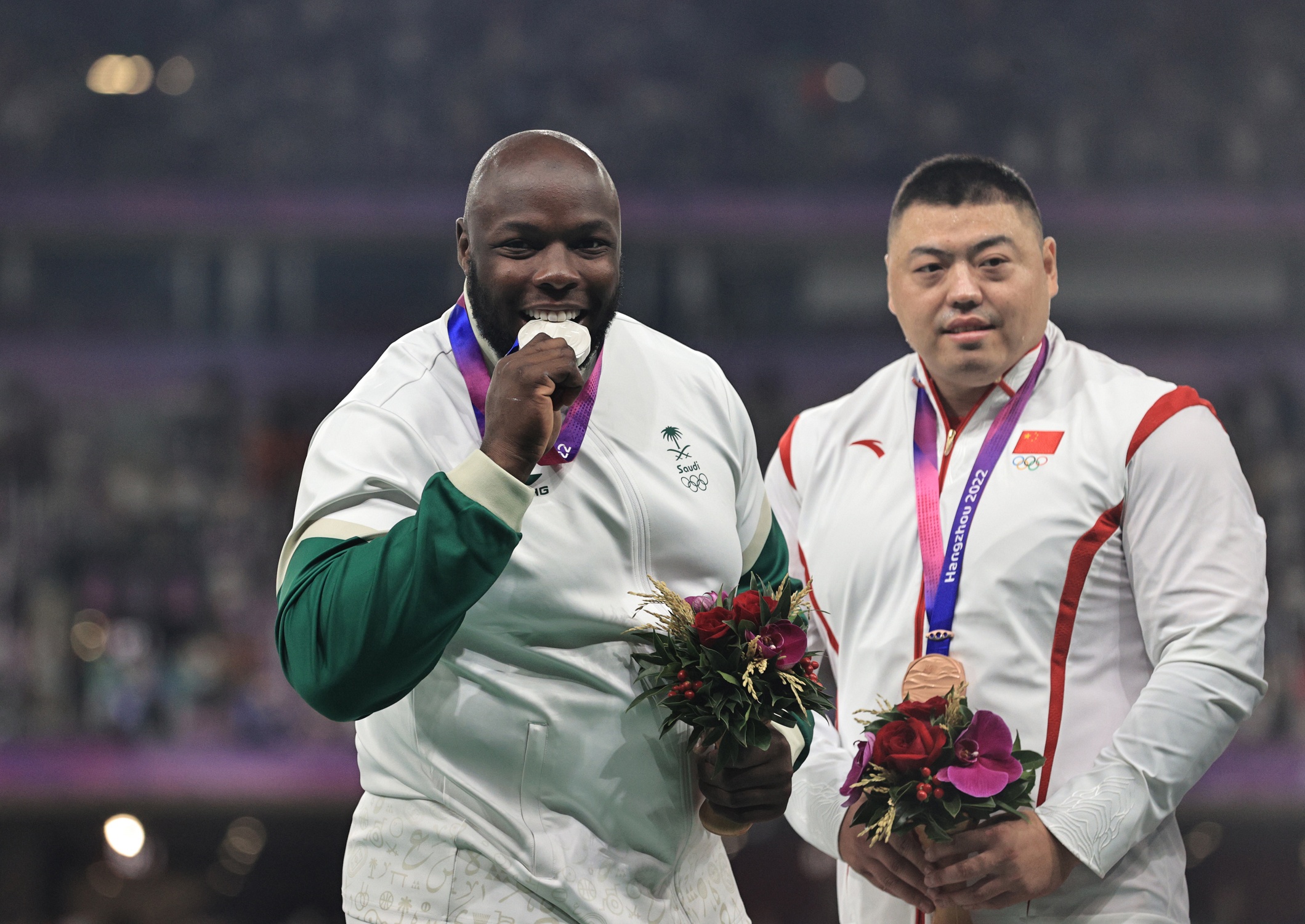 أضاف الرامي السعودي محمد تولو -22 سنة-، الميدالية السعودية الثالثة، في دورة الألعاب الاسيوية التاسعة عشر (هانغتشو2022) بعد انتزاعه لفضية مسابقة دفع الكرة الحديدية، ضمن منافسات ألعاب القوى التي جرت اليوم الأحد بحضور سمو رئيس البعثة السعودية الأمير فهد بن جلوي بن عبدالعزيز بن مساعد.