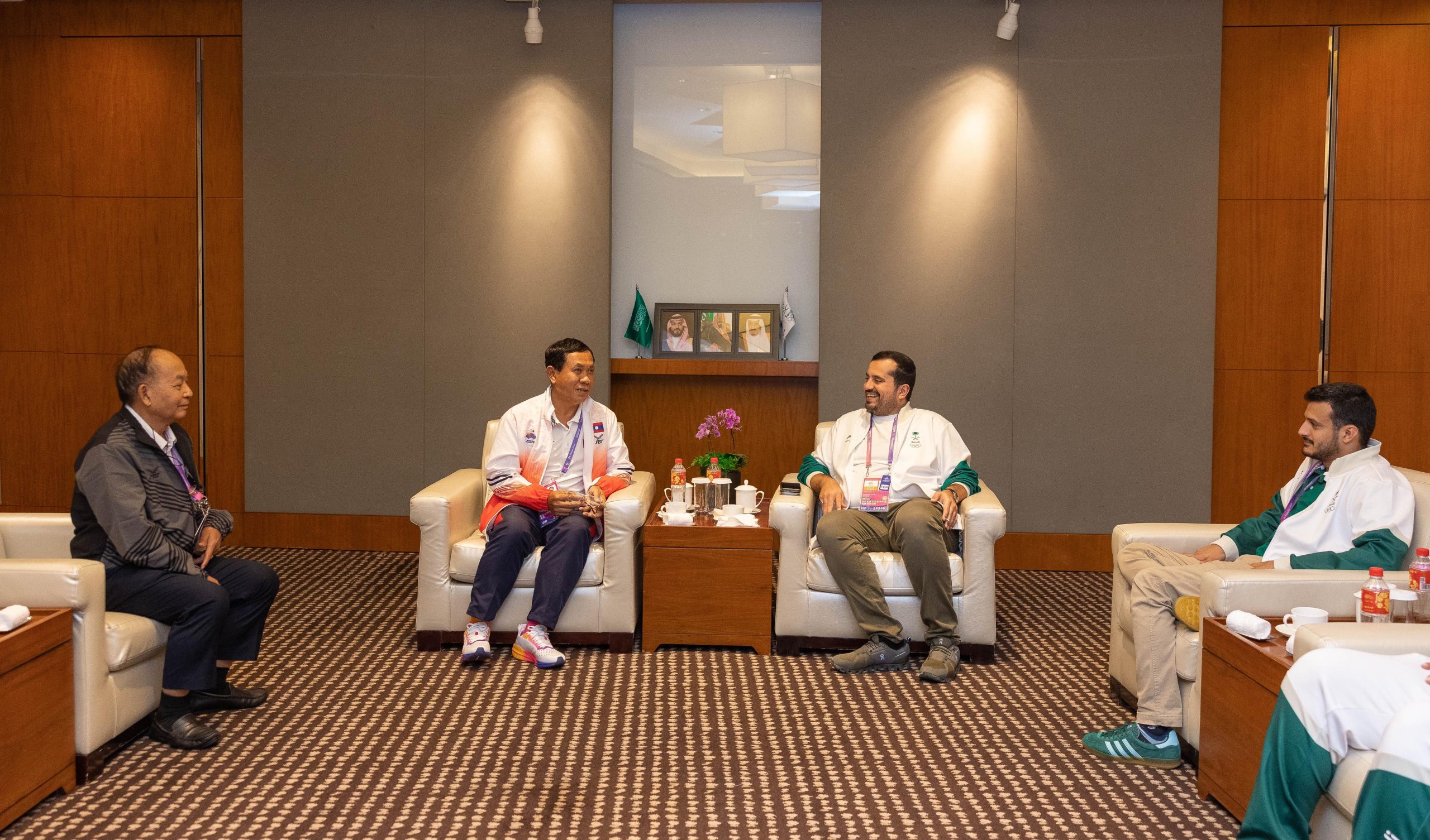 كما عقد سموه، لقاءً بنائب رئيس اللجنة الأولمبية في دولة لاوس السيد سينق فون بونمات، حيث تم مناقشة المشاركة السعودية اللاوسية بالدورة، وسبل تعزيز التعاون الرياضي، بين اللجنة السعودية ونظيرتها في لاوس، بما يسهم في تطوير الرياضة بالبلدين.