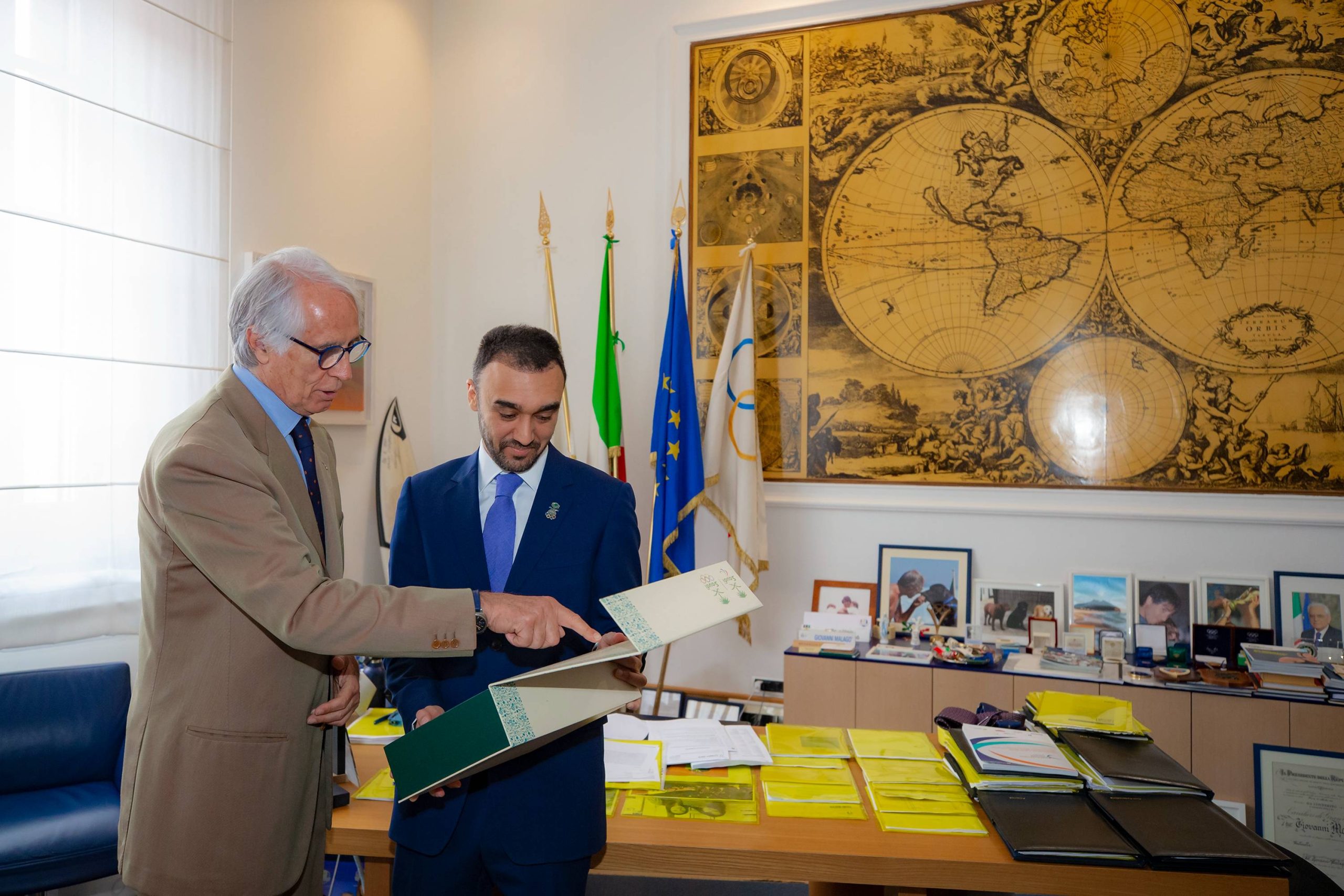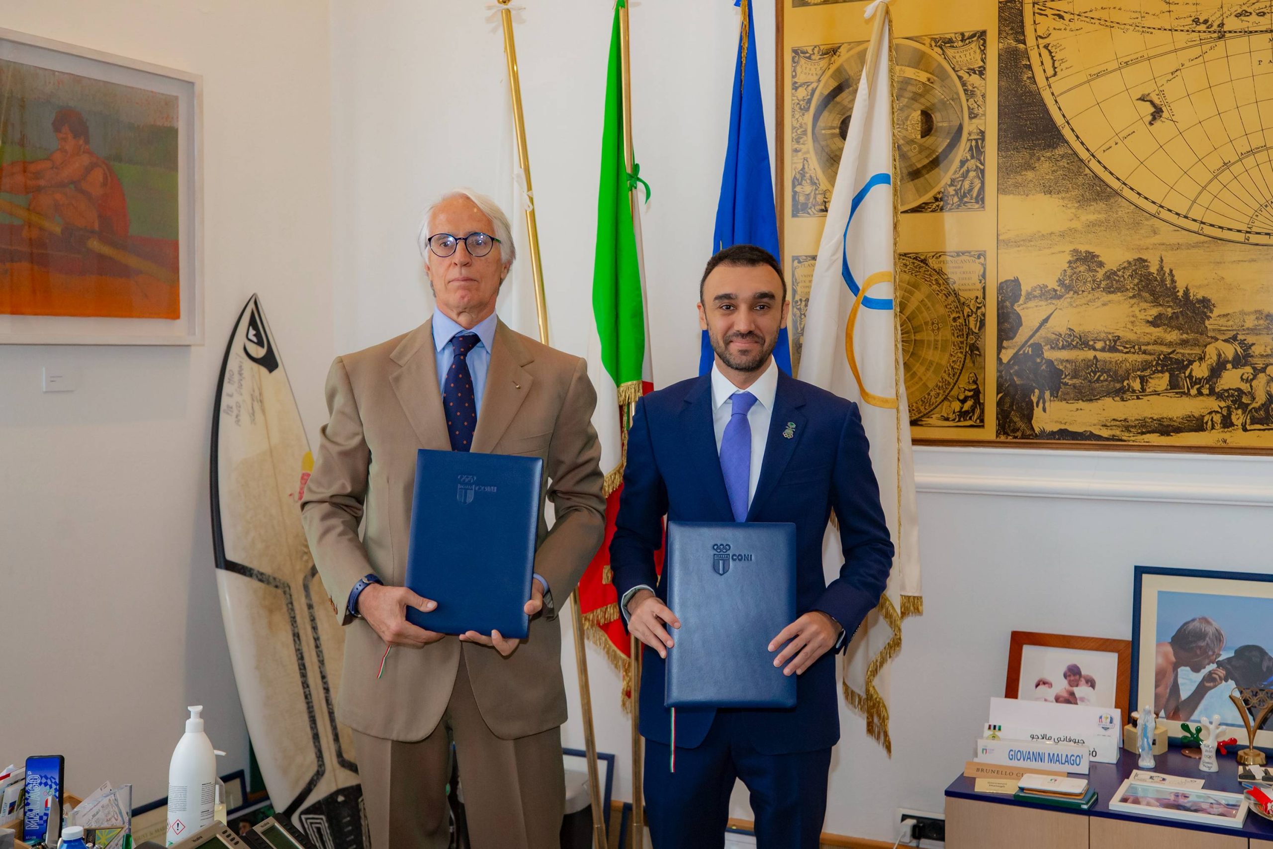 وقع سمو رئيس اللجنة الأولمبية والبارالمبية السعودية الأمير عبدالعزيز بن تركي الفيصل، ورئيس اللجنة الأولمبية الإيطالية السيد جيوفاني مالاغو مذكرة تعاون بين اللجنة الأولمبية والبارالمبية السعودية ونظيرتها الإيطالية لمدة أربعة أعوام.