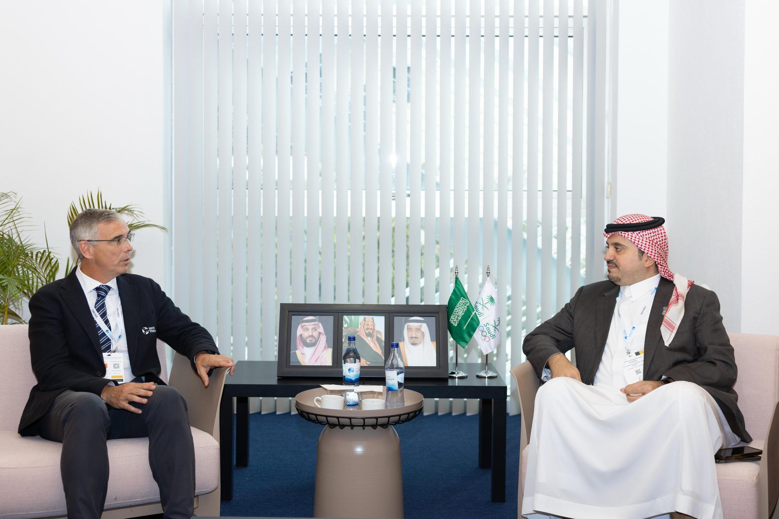 كما اجتمع سموه برئيس الاتحاد الدولي للترايثلون المنتخب حديثاً السيد انطونيو اريلاو .