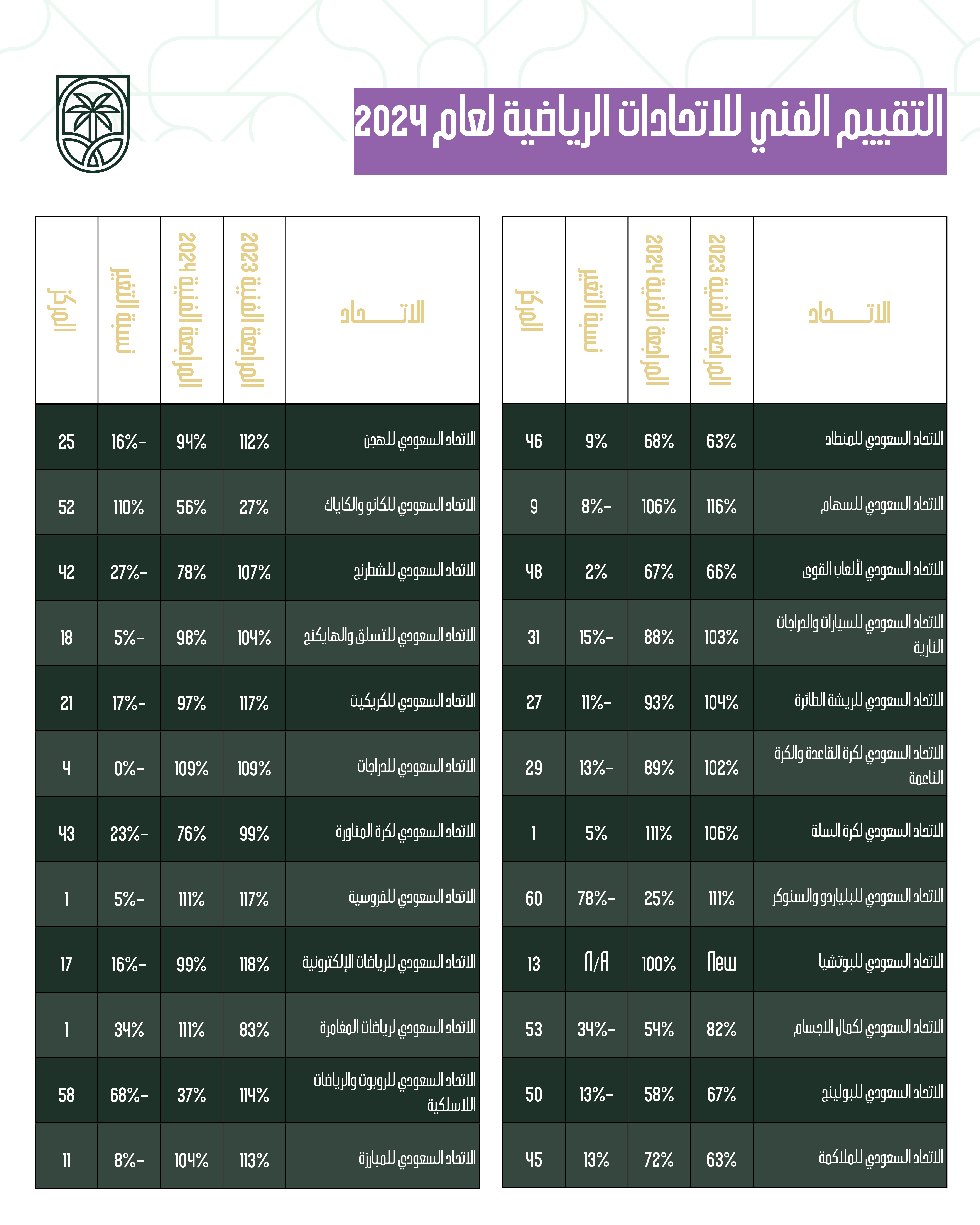 واشتمل التقييم على قياس الجانب الفني لتطور الاتحادات، حيث بلغ عدد الرياضيات السعوديات المسجلات رسمياً في الاتحادات عام 2024م، 7048 لاعبة، مقارنة بـ2026 لاعبة عام 2023م.