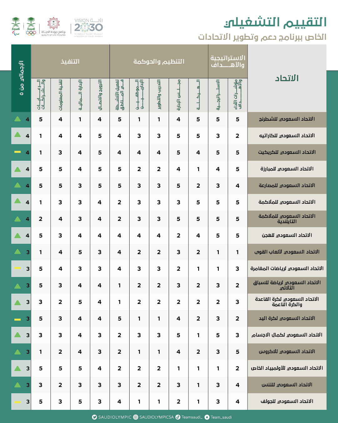 الأولمبية والبارالمبية تُعلن نتائج التقييم التشغيلي لاستراتيجية دعم الاتحادات 2023م