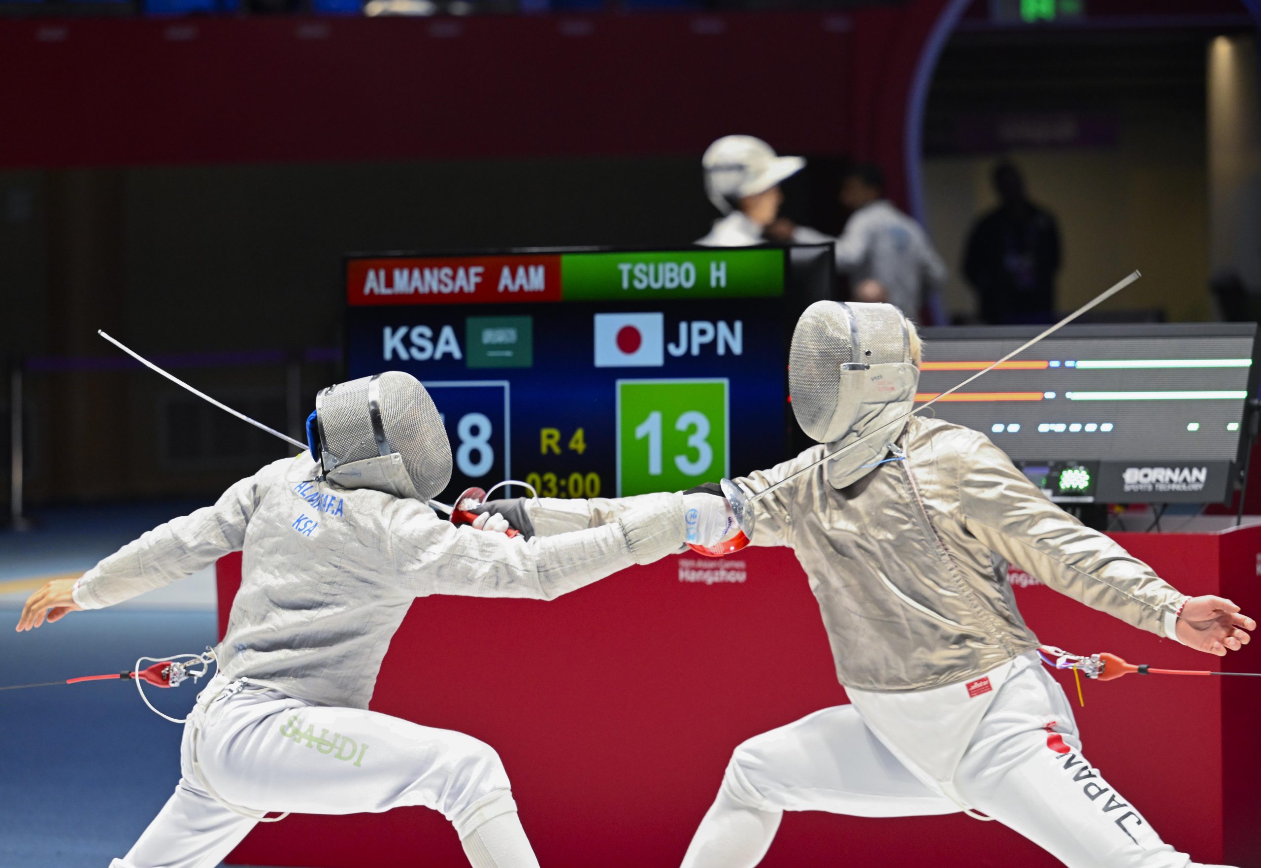 خرج لاعبي المنتخب السعودي للمبارزة، عادل المطيري وأحمد القديحي ومحمد العمر وعبدالله المنسف، من منافسات مسابقة سلاح السايبر للفرق التي جرت صباح اليوم الخميس، عقب خسارتهم في دور الـ16 من المنتخب الياباني بنتيجة 36 – 45 نقطة.