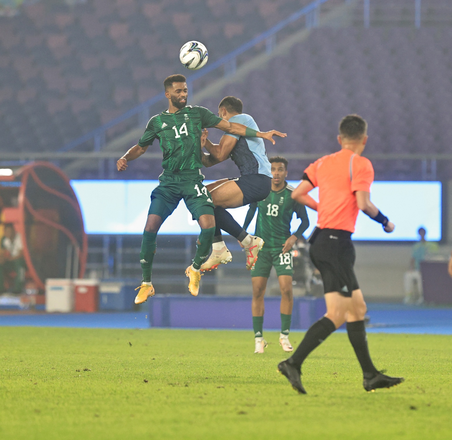 ودخل مدرب الأخضر الوطني سعد الشهري اللقاء بتشكيل مكون من، أحمد الجبيع، ومحمد أبو الشامات، ومحمد اليامي، وريان حامد، وزكريا هوساوي، وعوض الناشري، وفيصل الغامدي، وسعد الناصر، ومصعب الجوير، وهيثم عسيري، ونجم اللقاء محمد مرّان.