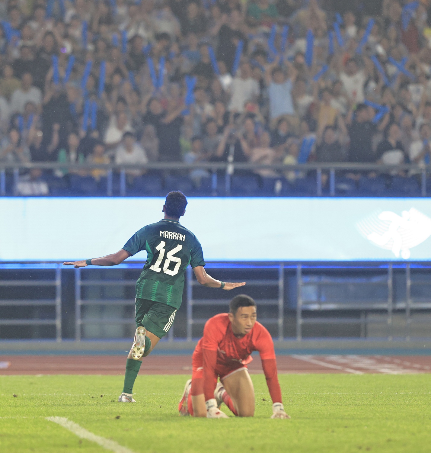وجاءت أهداف الأخضر عن طريق محمد مران في الدقيقة (51)، والدقيقة (58).