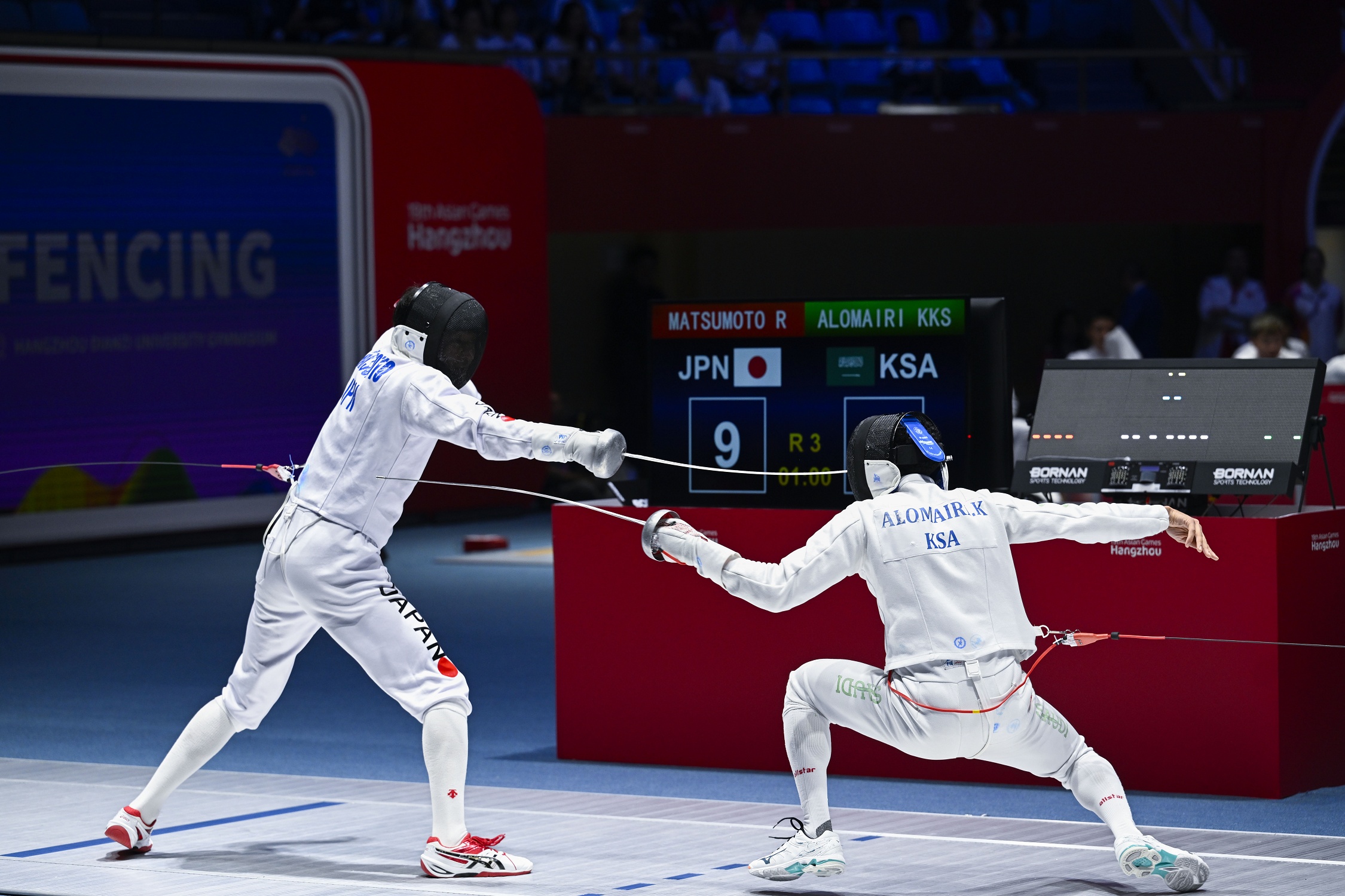 خرج المنتخب السعودي للمبارزة، من منافسات دورة الألعاب الاسيوية، عقب خسارة الرباعي أحمد آل حسين وخليفة العميري وجواد الداود وفيصل عابد، من مسابقة سلاح الابيه للفرق، بخسارتهما أمام المنتخب الياباني في دور ربع النهائي بنتيجة 43 – 45 ظهر اليوم الجمعة.