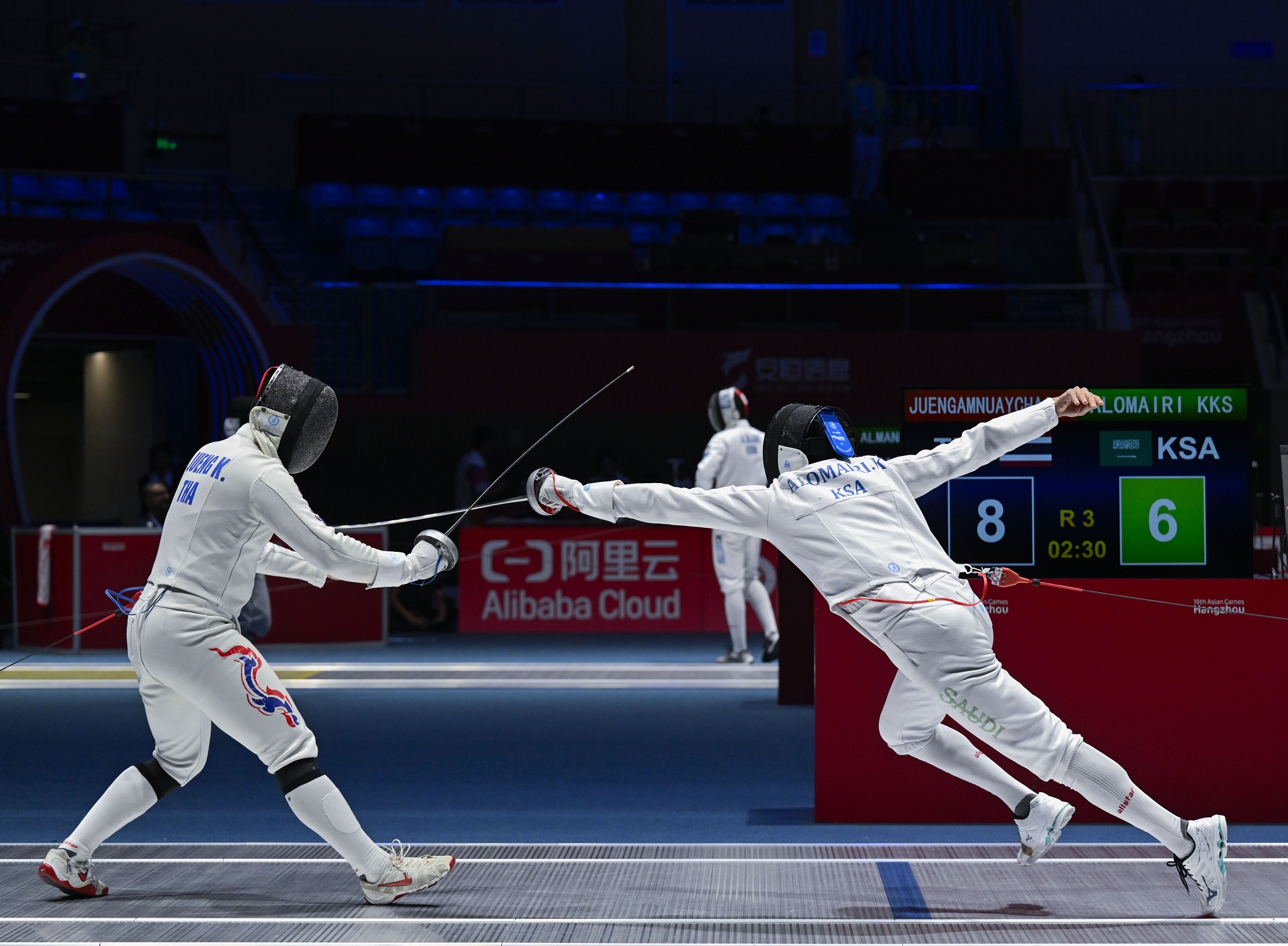 وفي منافسات سلاح السايبر للفرق للسيدات التي أقيمت في الفترة الصباحية، خرج المنتخب السعودي للفرق والمكون من الحسناء الحماد وربى المصري وتالين القضماني ودانة القحطاني، من منافسات دور ثمن النهائي، بخسارتهم أمام سيدات المنتخب التايلندي بنتيجة 27 – 45.