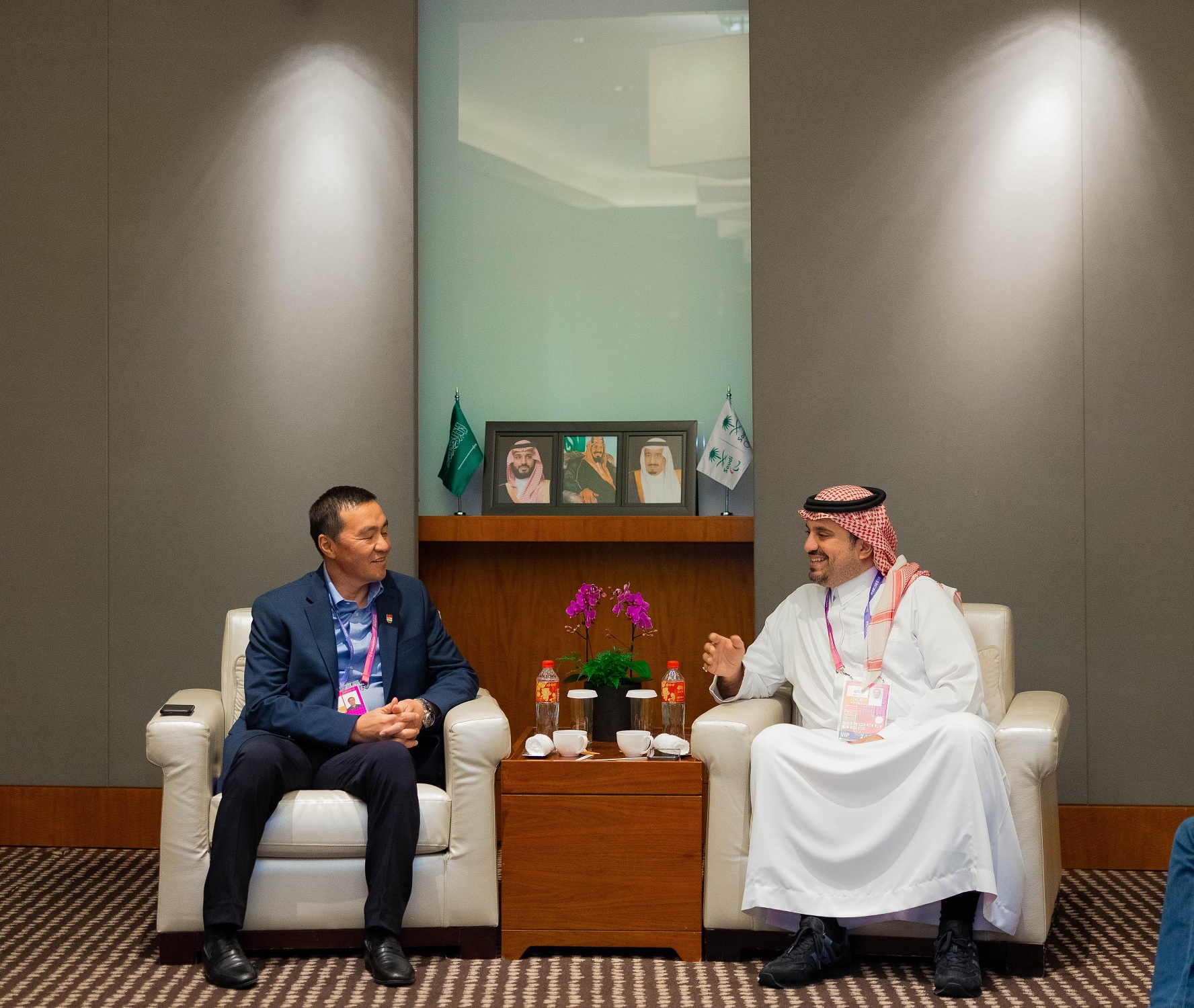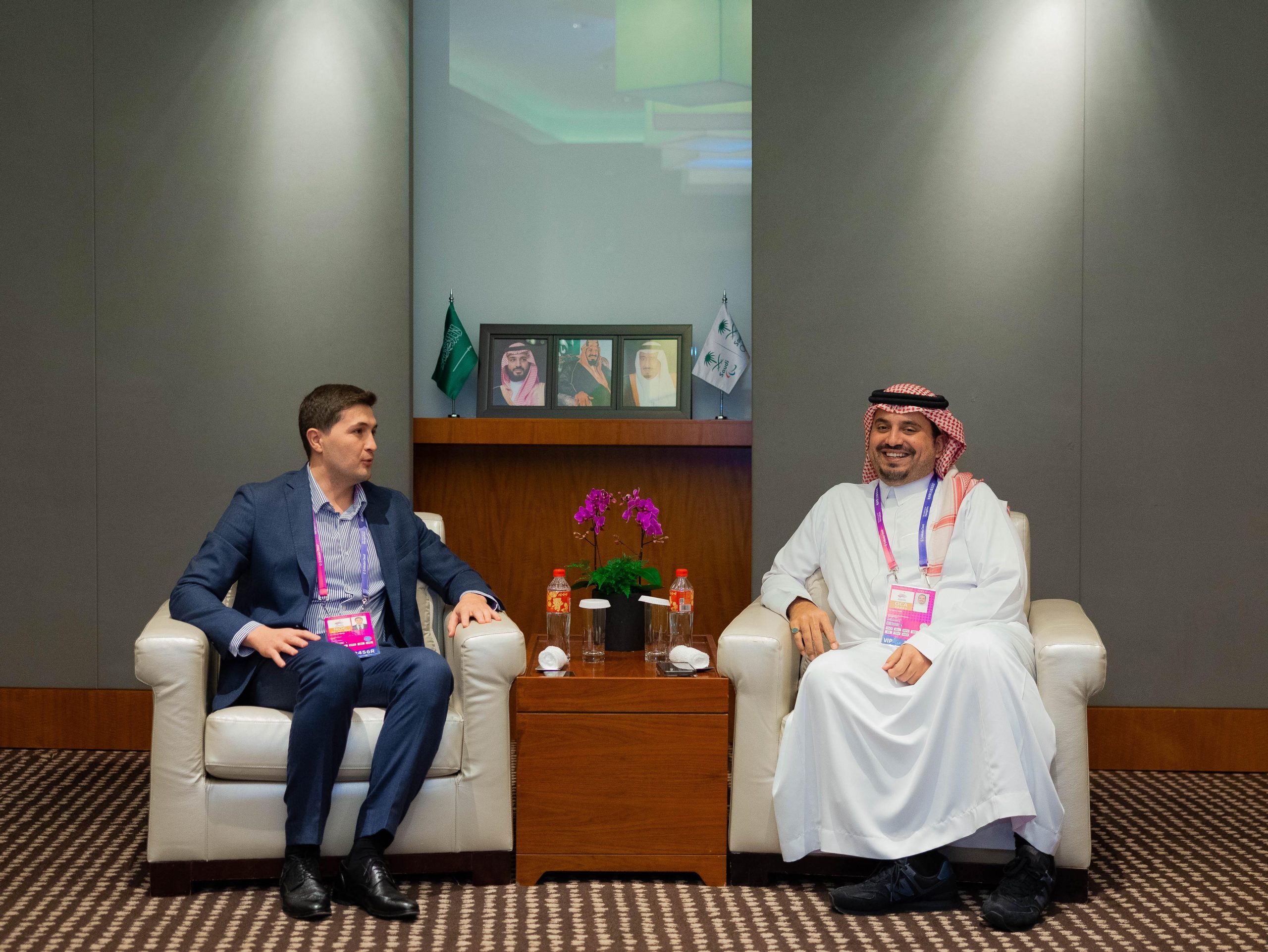 كما عقد سموه، لقاءً برئيس البعثة التركمانستانية السيد آتا اكماميدوف، حيث تم مناقشة المشاركة السعودية التركمانية بالدورة، وسبل تعزيز التعاون الرياضي بين اللجنة الأولمبية والبارالمبية السعودية ونظيرتها في تركمانستان، بما يسهم في تطور الرياضة بالبلدين.