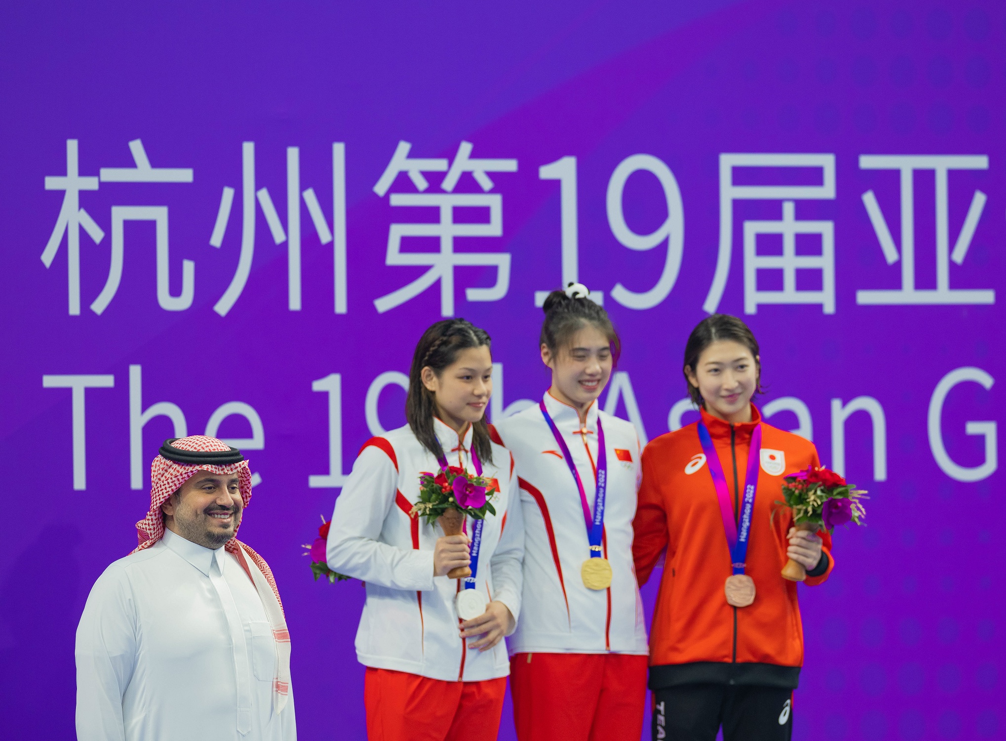 توج الفائزات في منافسات السباحة