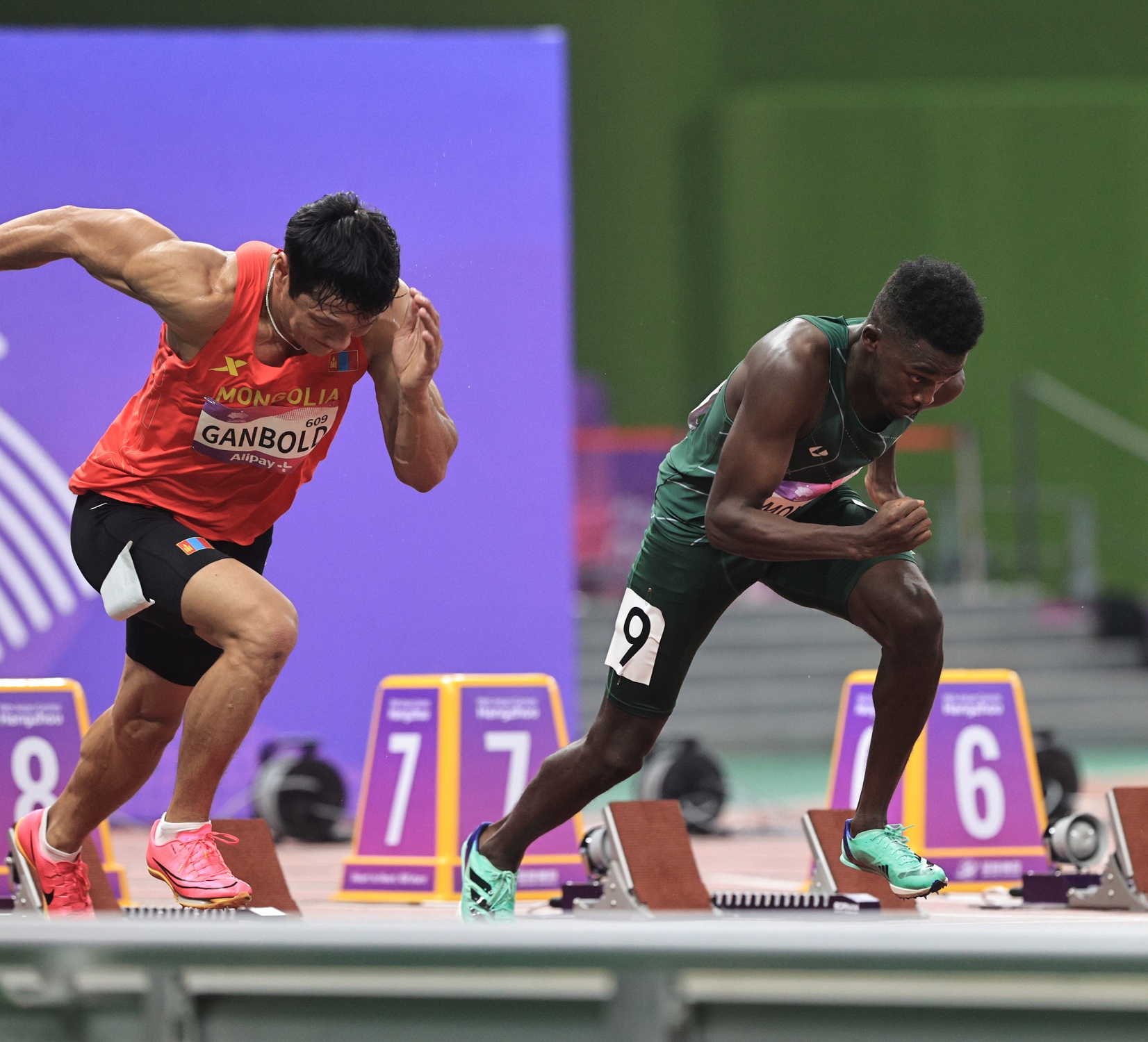 وبعد نحو 25 دقيقة، من انطلاقة نهائي القفز بالعصا، يشارك العداءان عبدالله أبكر وناصر محمود، في نصف نهائي سباق 100م، في تمام السابعة والنصف مساءً.