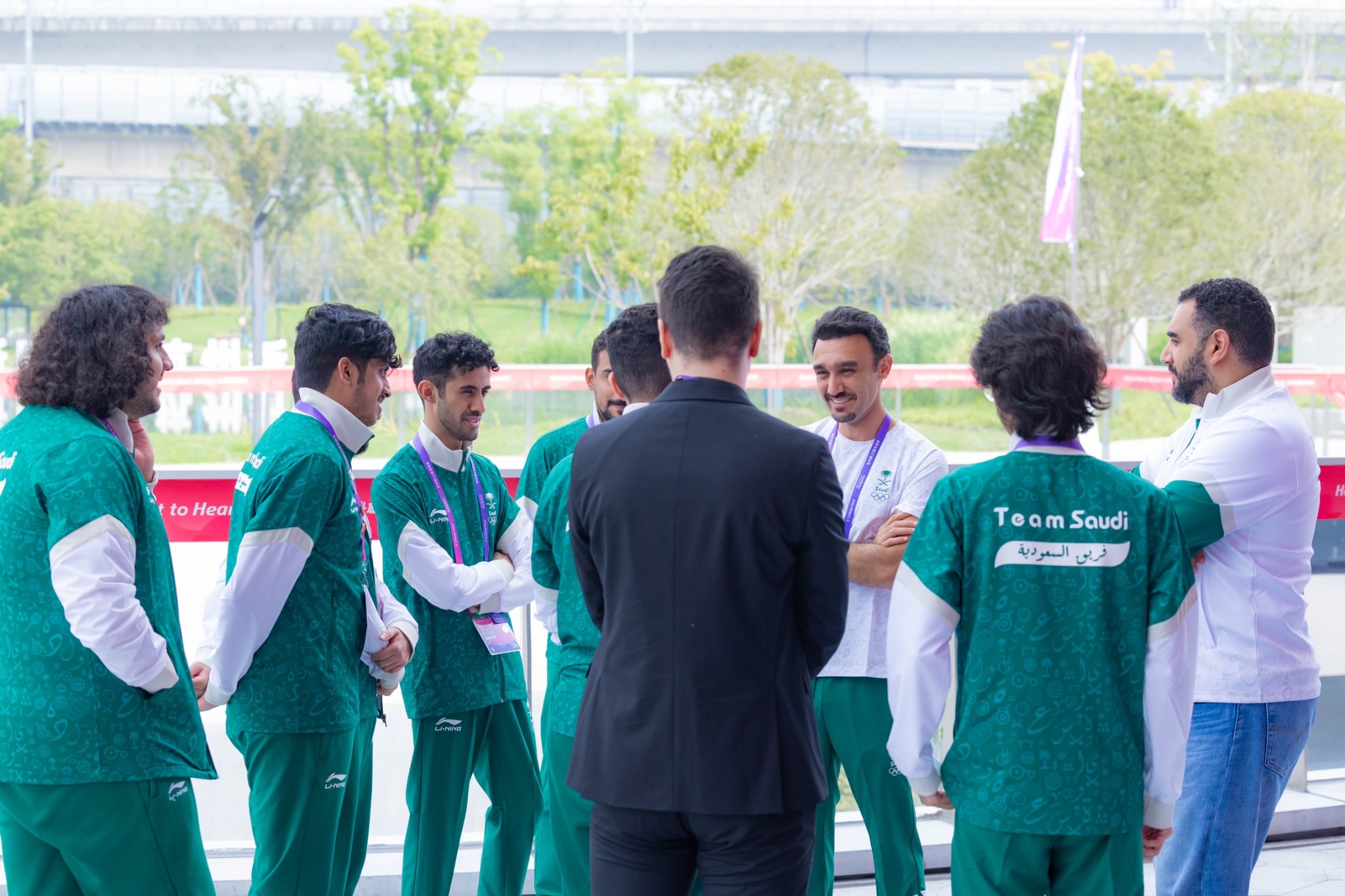 فيما تواجد سمو نائب رئيس اللجنة الأولمبية والبارالمبية السعودية نائب رئيس الوفد السعودي الأمير فهد بن جلوي بن عبدالعزيز بن مساعد، في مباراة المنتخب السعودي لكرة اليد أمام المنتخب الإيراني التي جرت ظهر اليوم ضمن مواجهات المجموعة الرابعة لمسابقة كرة اليد على صالة مركز الرياضات بجامعة (gongshang) بهانغتشو.