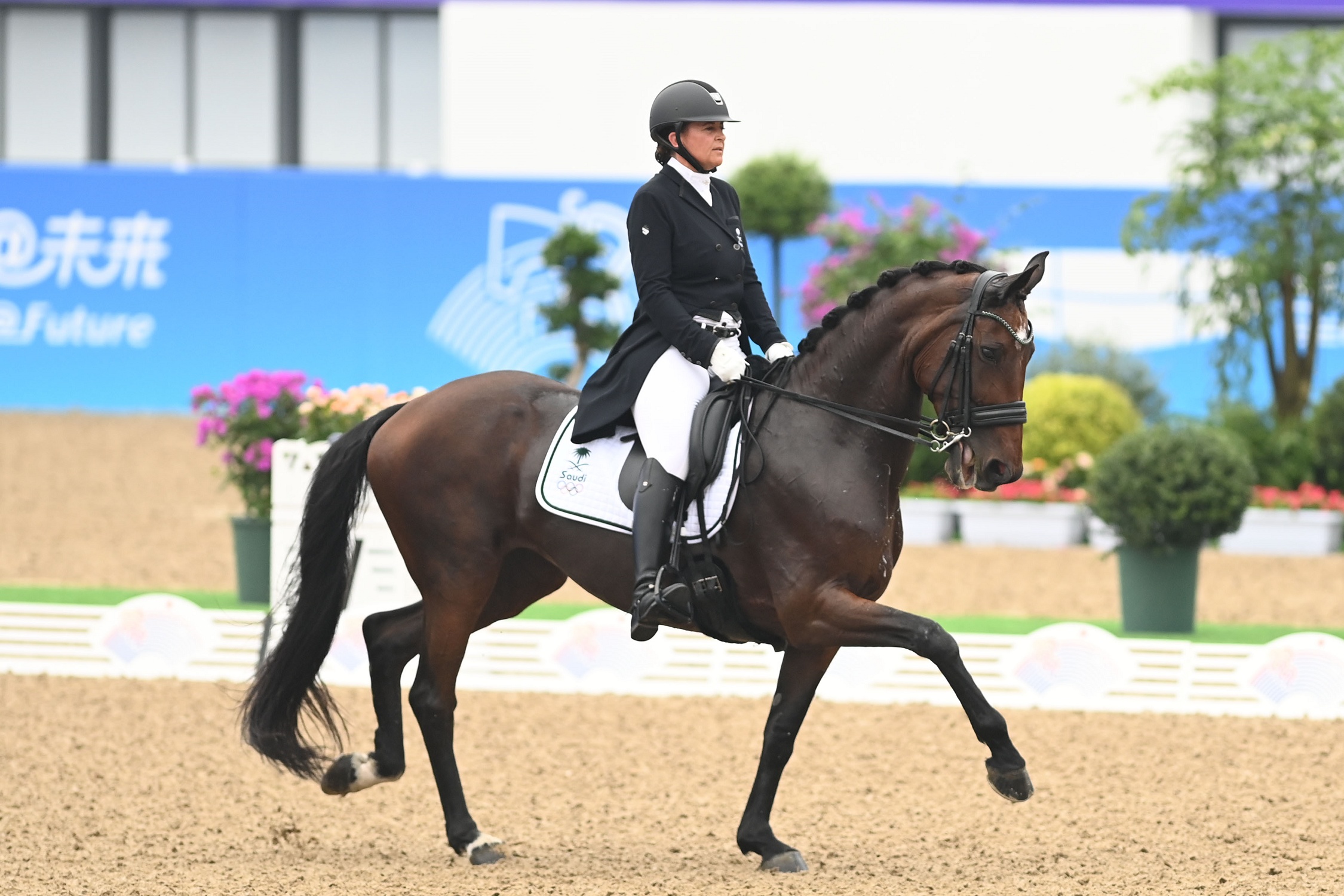 حققت الفارسة السعودية، سامنثا الصيفي، 57.706 نقطة في الجولة الثانية المؤهلة لنهائي الترويض ضمن مسابقات الفروسية بالدورة التي أقيمت صباح اليوم في ميدان الفروسية بهانغتشو.