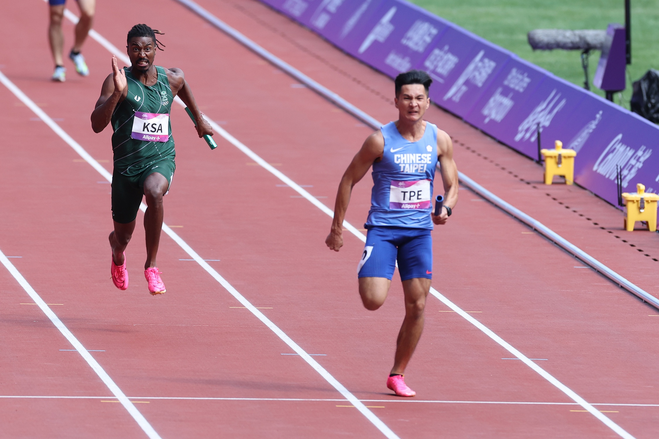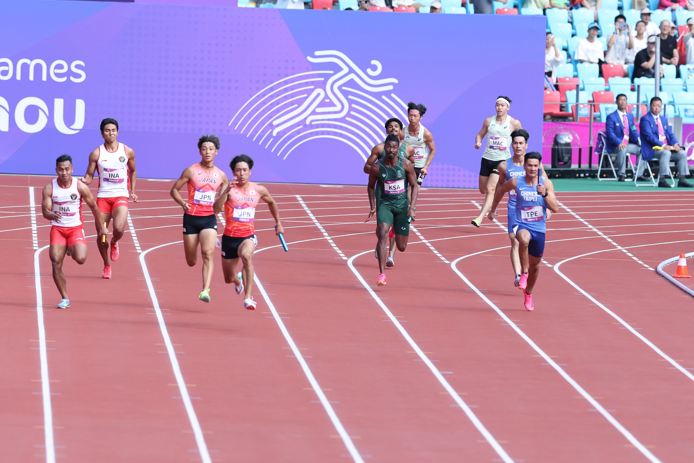 وغادر فريق التتابع السعودي 4×100م، والمكون من، سلطان الخالدي وعبدالعزيز عطافي وحمود علواني ومحمود حافظ، المنافسات، بحلوله خامساً في تصفيات السباق الذي جرى اليوم، بزمن 40.34 ثانية.