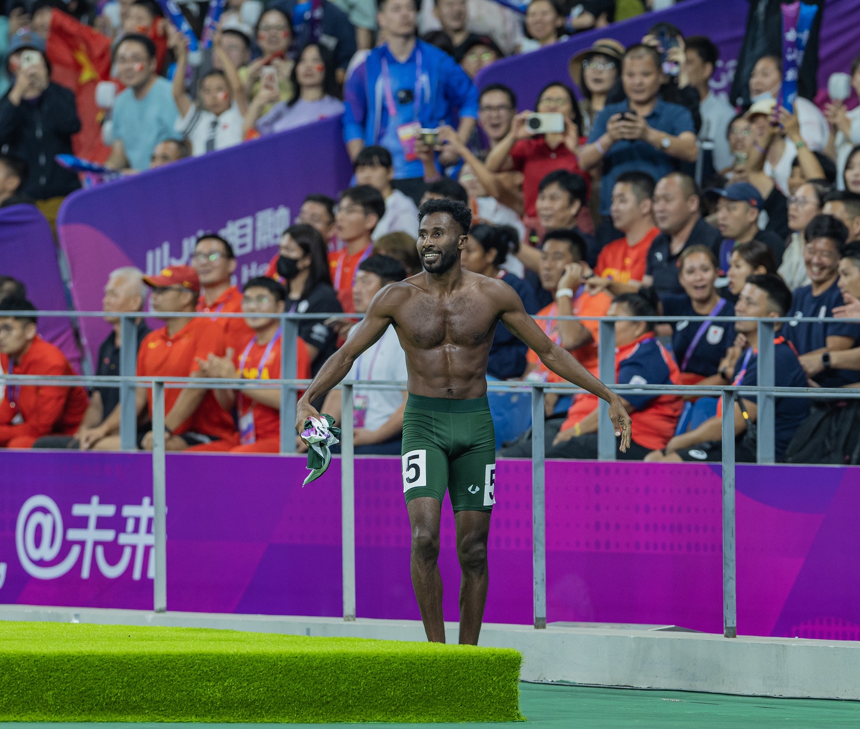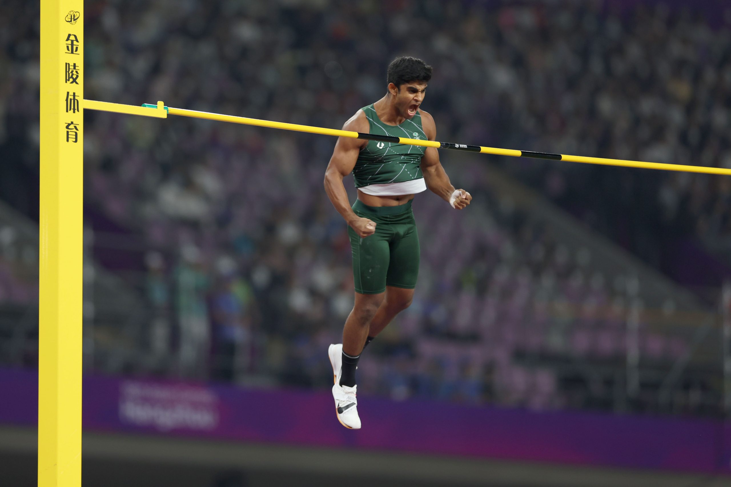 حقق لاعب المنتخب السعودي لألعاب القوى، حسين آل حزام، الميدالية الأولى له في دورات الألعاب الاسيوية، إثر فوزه بالميدالية البرونزية لمنافسات القفز بالعصا بعد أن قفز لمسافة 5.65م اليوم السبت.
