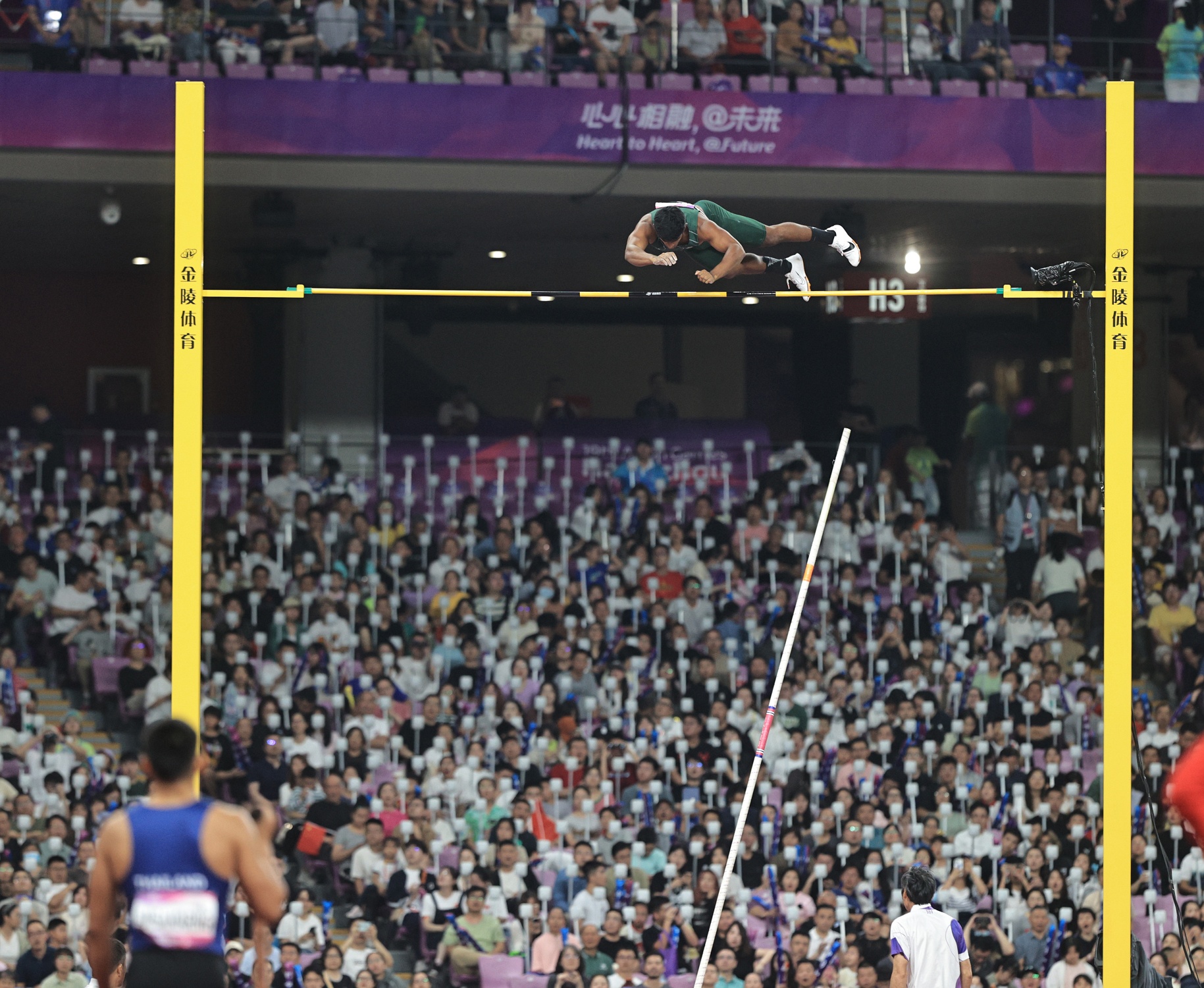 ونال الفلبيني “أوبينا” ذهبية القفز بالعصا، بمسافة 5.90م، وخطف الصيني “هوانج” الفضية بقفزه لمسافة 5.65م