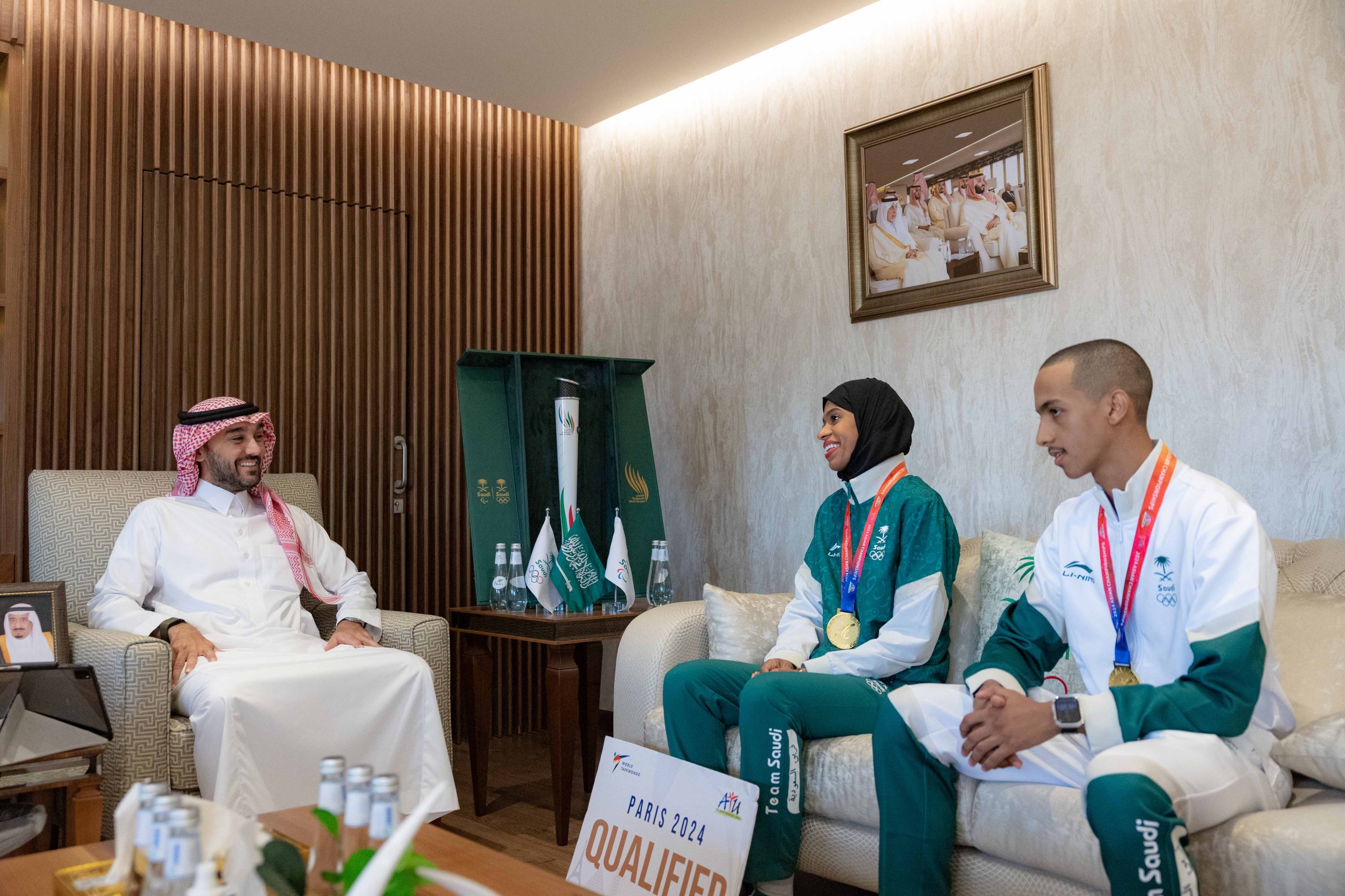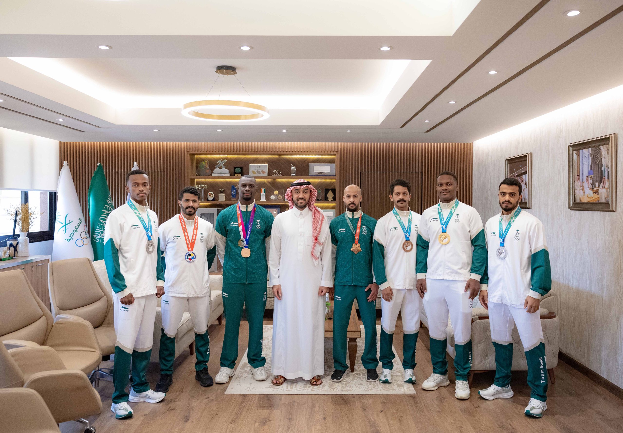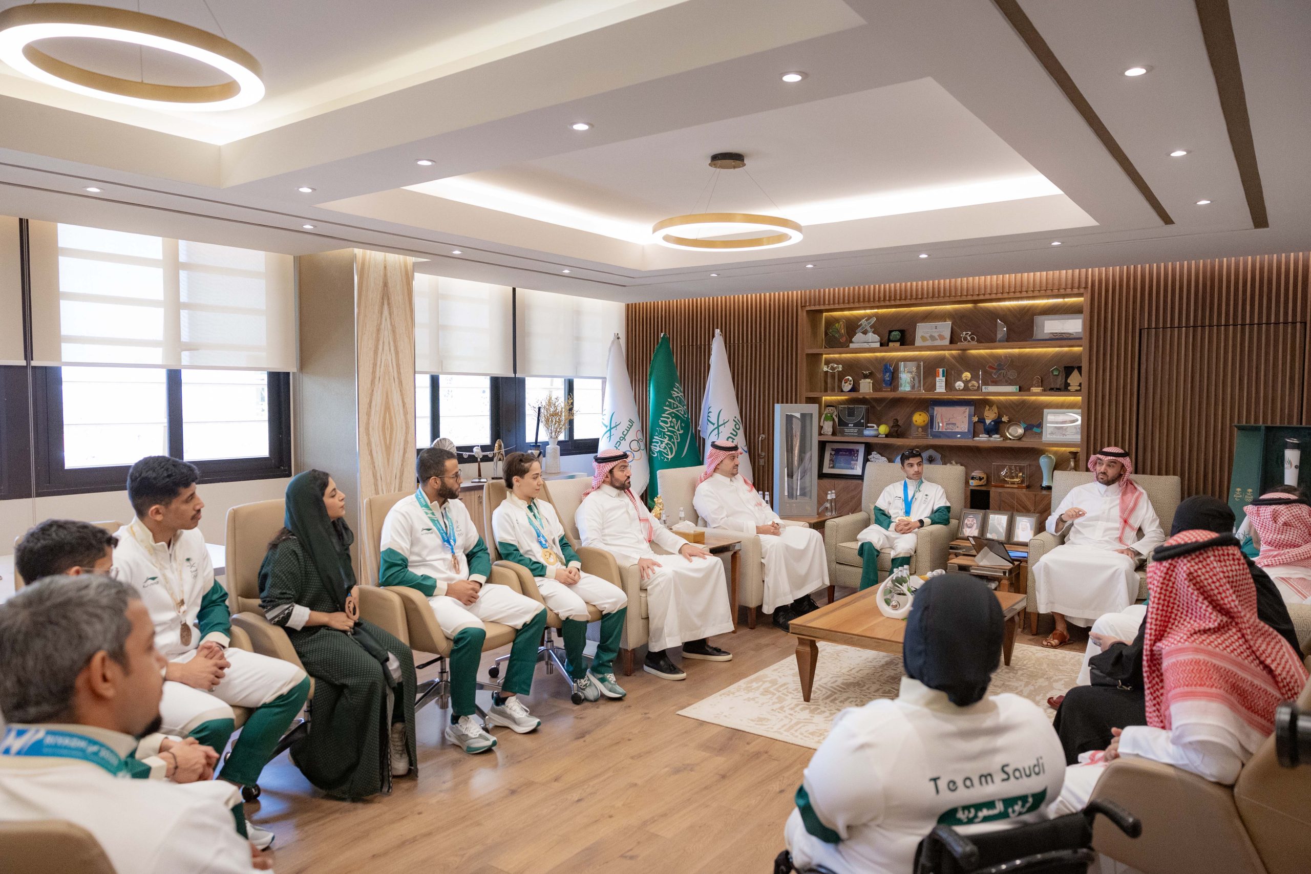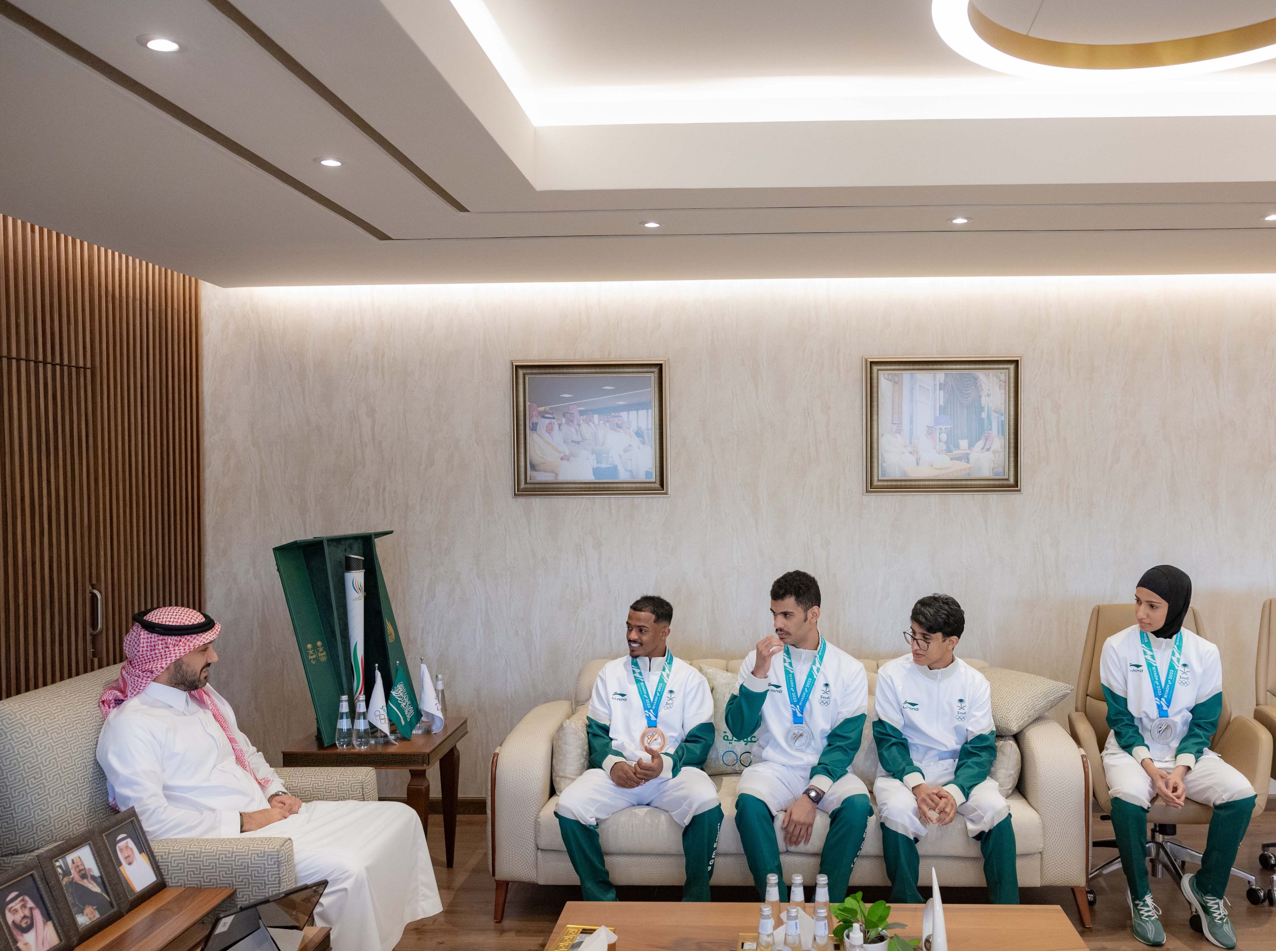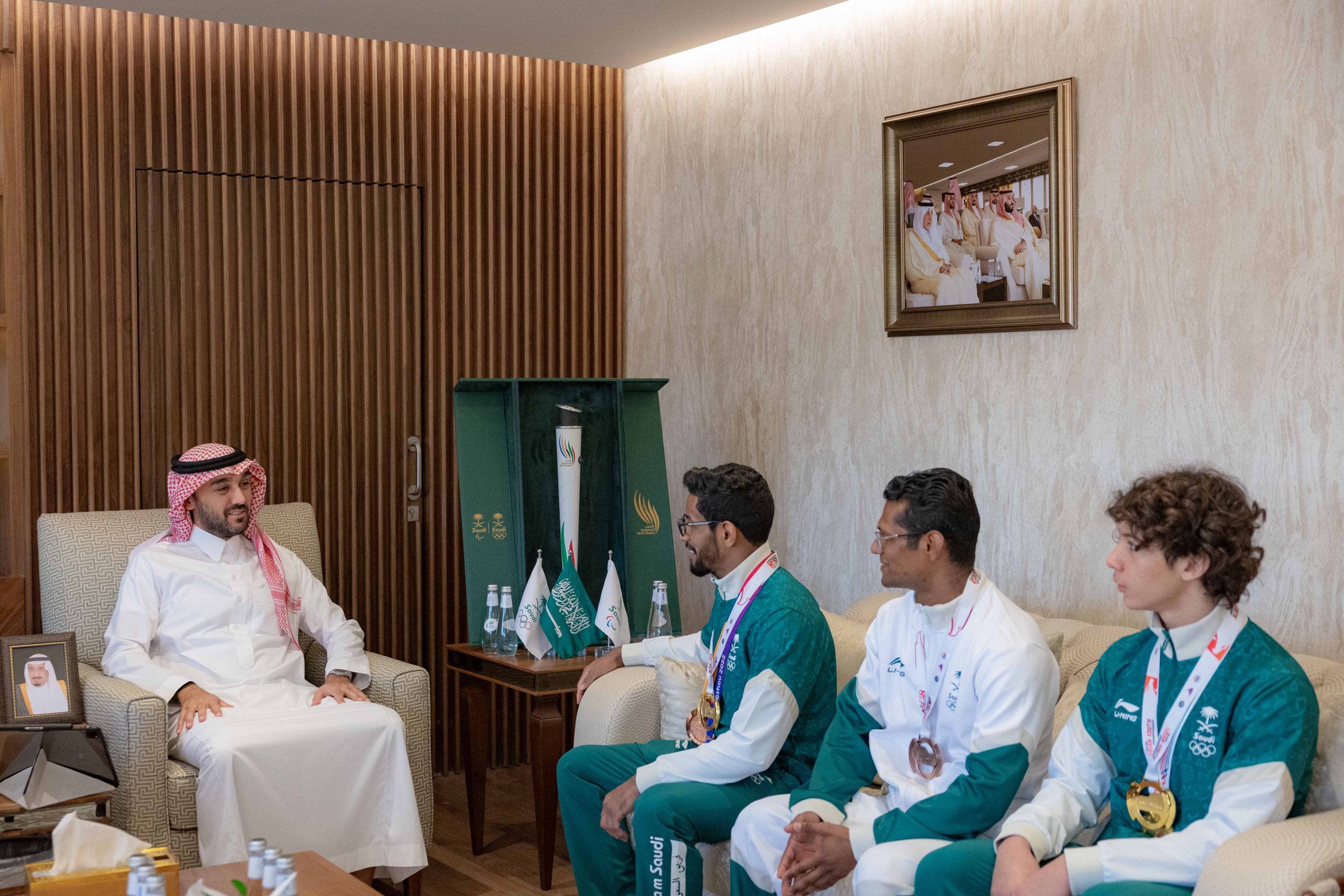 وشهد اللقاء، حضور عدد من الرياضيين الذين اسهموا في رفع علم المملكة في دورة الألعاب الأسيوية “هانغتشو 2022” وهم العداء السعودي الواعد عيسى غزواني الذي فاز بذهبية سباق 800م، وعبدالملك آل مرضي لاعب المنتخب السعودي للجوجيتسو الذي نال برونزية وزن 62 كجم، ولاعب المنتخب السعودي للكاراتيه طارق حامدي بنيله برونزية وزن فوق 84 كجم، حيث تعذّر على لاعبي المنتخب السعودي لقفز الحواجز، وعدد من لاعبي المنتخب السعودي لألعاب القوى، ولاعب المنتخب السعودي للجوجيتسو عمر ندا، ولاعبي المنتخب السعودي لألعاب القوى البارالمبية، اللقاء بسمو الرئيس؛ لارتباطهم بمعسكرات وبطولات رياضية خارج المملكة.