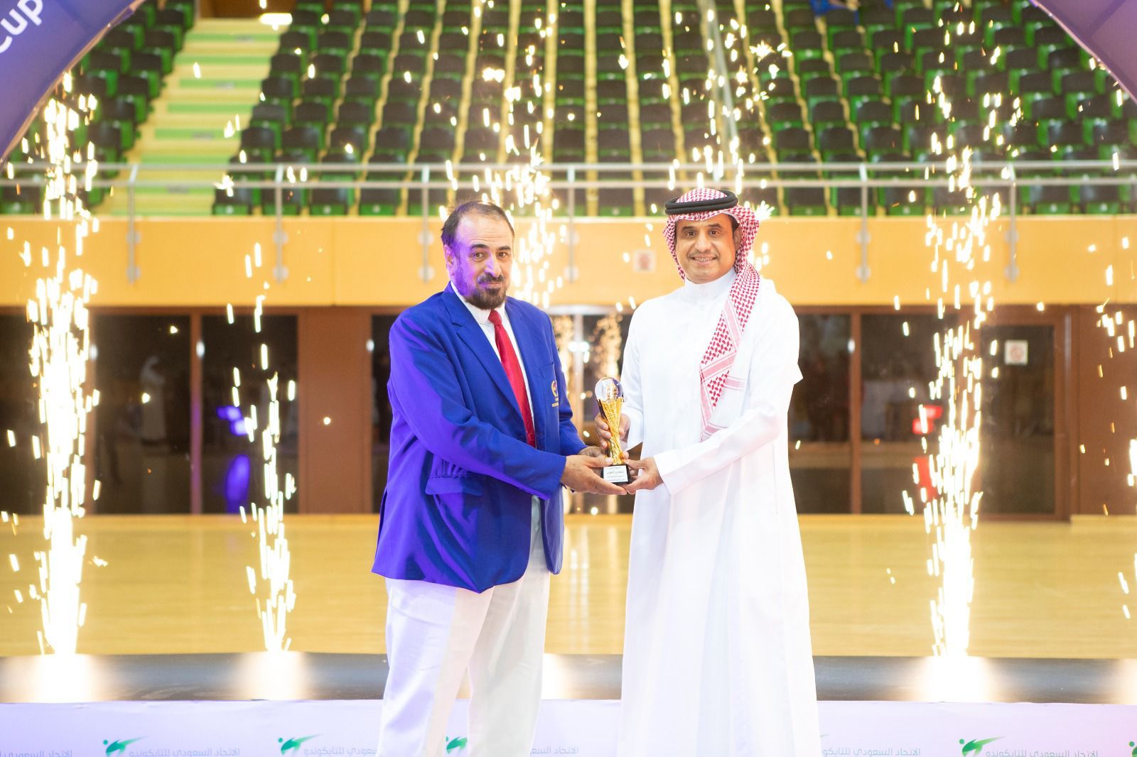 كما تم تكريم الحكمين الدوليين مفضي العنزي ونايف الغامدي لقاء مسيرتهما الطويلة في تحكيم التايكوندو داخلياً ودولياً .