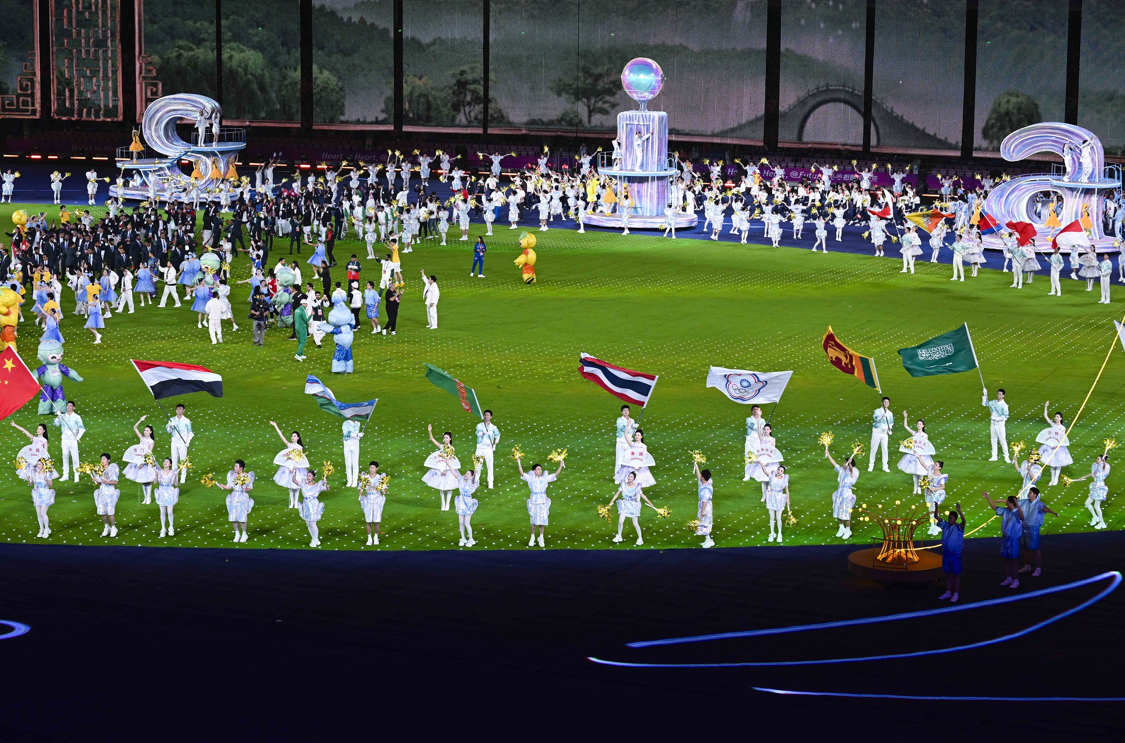 وشهد الحفل، عدد من الفقرات الفنية، والفيديوات المرئية، التي تناولت أهم احداث الدورة، إضافة لتسليم العلم لمستضيف الدورة الاسيوية العشرون المقامة في مدينة ناغويا باليابان 2026م، وكلمة المجلس الأولمبي الاسيوي، وكلمة اللجنة المنظمة.