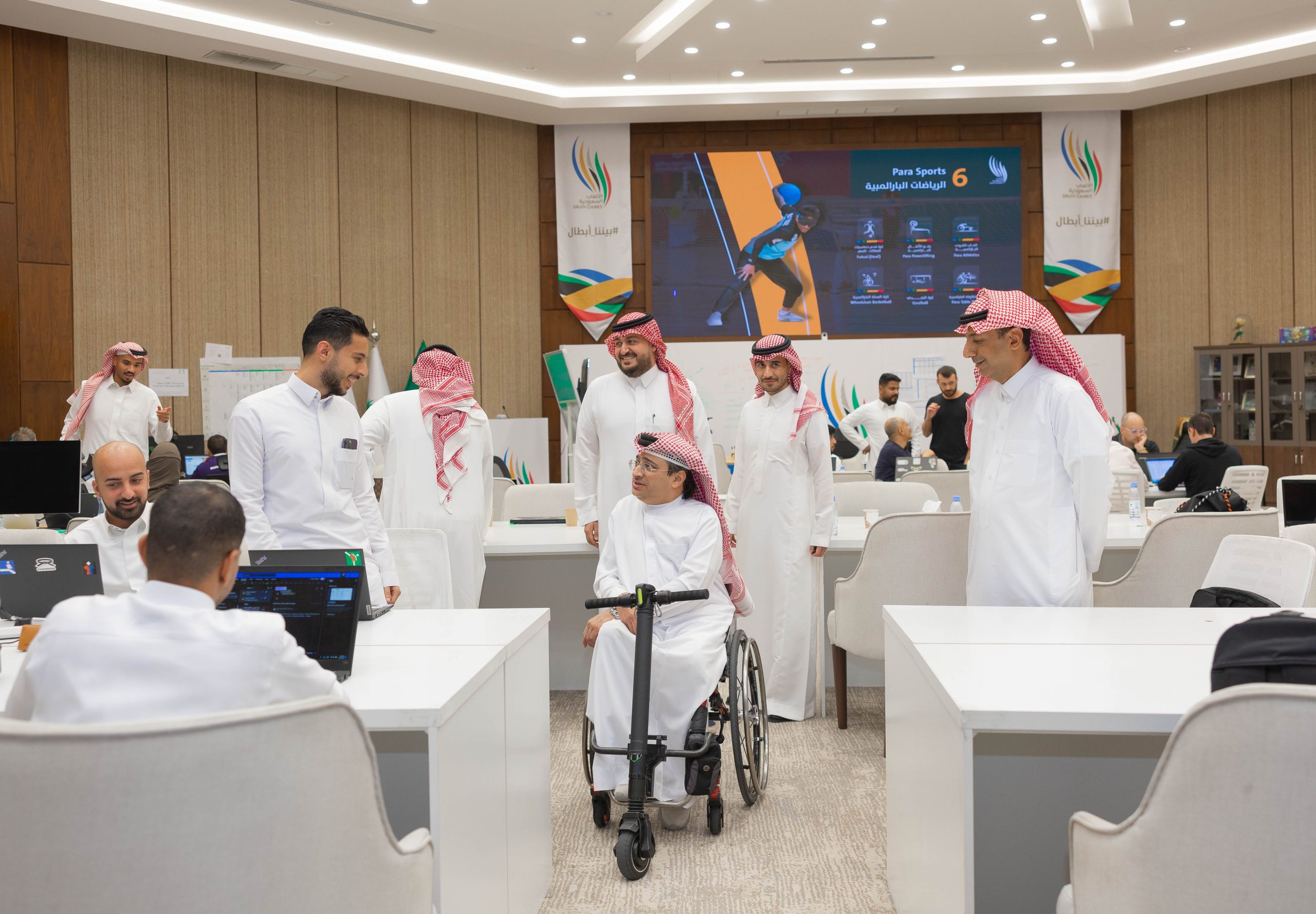 والتقى سعادته، بفريق عمل دورة الألعاب السعودية 2023، حيث أشاد باحترافية عمل الكوادر الادارية من الشباب والشابات لإخراج الدورة بالشكل الذي يليق بسمعة الرياضة السعودية، بدعم خادم الحرمين الشريفين الملك سلمان بن عبدالعزيز آل سعود، وسمو ولي العهد رئيس مجلس الوزراء الأمير محمد بن سلمان بن عبدالعزيز، ومتابعة واهتمام سمو الرئيس الأمير عبدالعزيز بن تركي الفيصل وسمو نائبه الأمير فهد بن جلوي بن عبدالعزيز بن مساعد، بما يتماشى مع رؤية المملكة 2030. وابدى راشد ارتياحه، بجاهزية اللجنة الأولمبية والبارالمبية السعودية لاستضافة الجمعية العمومية للجنة البارالمبية الاسيوية في الخامس والعشرون من نوفمبر الجاري وعلى مدى أربعة أيام في مدينة الرياض بحضور ممثلي 45 لجنة اسيوية.