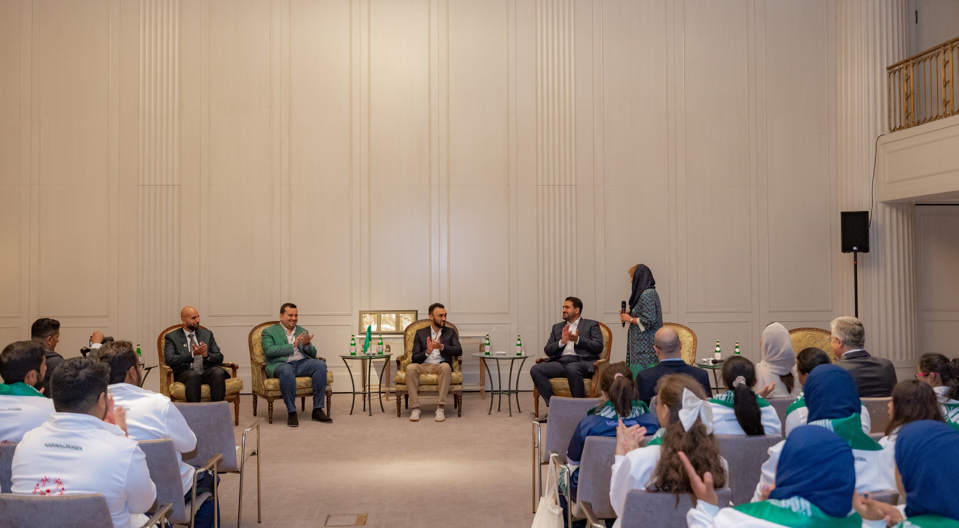 التقى صاحب السمو الملكي الأمير عبدالعزيز بن تركي بن فيصل وزير الرياضة رئيس اللجنة الأولمبية والبارالمبية السعودية اليوم في برلين برئيس الوفد السعودي المشارك في دورة الألعاب العالمية للأولمبياد الخاص “برلين 2023” الأستاذ عبدالرحمن القريشي وأعضاء الأجهزة الفنية والإدارية ولاعبي المنتخبات السعودية المشاركة في الدورة، وذلك بحضور صاحب السمو الأمير فهد بن جلوي نائب رئيس اللجنة الأولمبية والبارالمبية السعودية وسفير خادم الحرمين الشريفين لدى جمهورية ألمانيا الاتحادية صاحب السمو الملكي الأمير عبدالله بن خالد بن سلطان والاستاذة أضواء العريفي مساعد الوزير لشؤون الرياضة عضو مجلس إدارة اللجنة الأولمبية والبارالمبية السعودية والأستاذ عبدالعزيز باعشن الأمين العام الرئيس التنفيذي للجنة الأولمبية والبارالمبية والدكتورة مها الجفالي رئيس الاتحاد السعودي للأولمبياد الخاص.